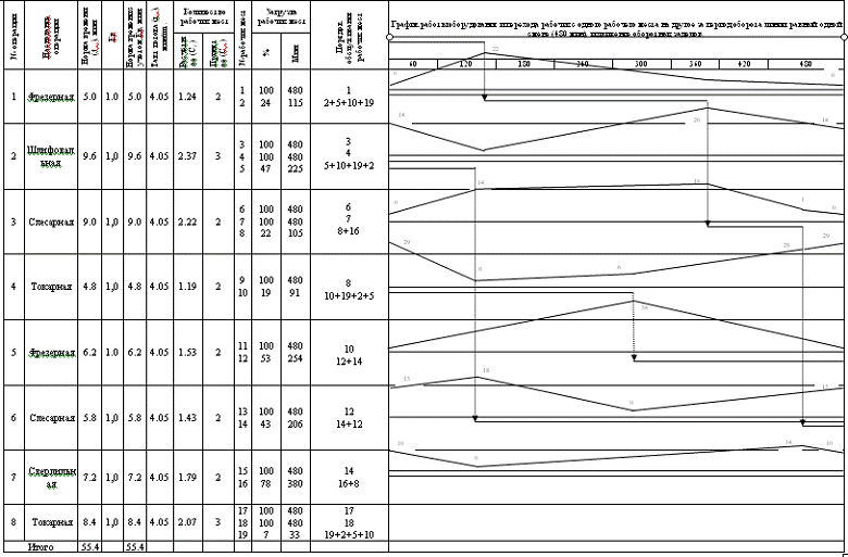 4,05 мин/шт., количество рабочих мест равно 19, количество основных