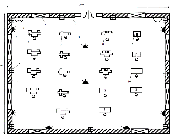 также его планировка с учетом нормативов площади по каждому виду оборудования.