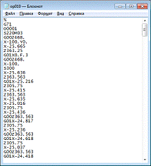 *.tap. На рисунке 25 приведен фрагмент управляющего кода. Весь код управляющей