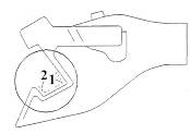 зажимные болты 2, указатель 7 наименьшей допускаемой толщины замка и опоры 3, 4