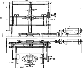 которым перемещается рамка из планок 7 и 8 с закрепленными в них подшипниками,