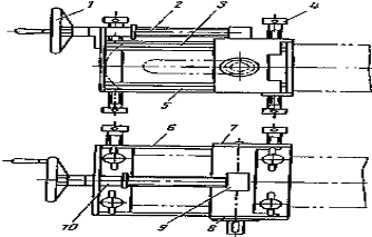 Затем вращением рукоятки 1, находящейся на оси червяка, поворачивают обойму с