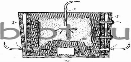 Со стороны набивки стержень продувают через одну или несколько трубок 3. Для