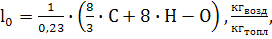 где: 0,23 - массовое содержание кислорода в 1 кг воздуха;