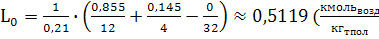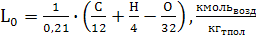 Теоретически необходимое количество воздуха для сгорания 1 кг топлива