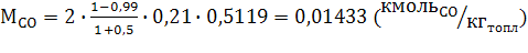 ,21 - объемное содержание кислорода в 1 кмоль воздуха;