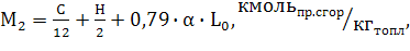 При неполном сгорании топлива (α<1, примем α=0,92) продукты сгорания представляют собой