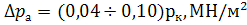 3). Потери давления ∆pа за счет сопротивления впускной