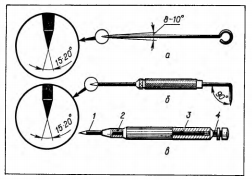 беруть правою рукою за рукоятку на відстані 15 ... 20 мм від її кінця. Міцно