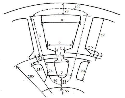 = (0,5…0,7) мм - висота шлица паза ротора.