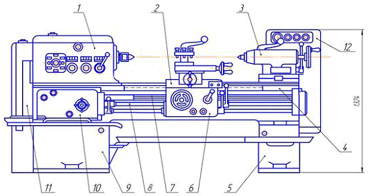 різця та забезпечення руху подачі, тобто переміщення різця в поздовжньому і