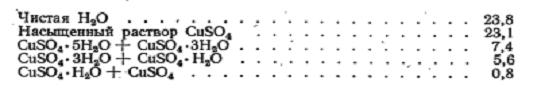 водяных паров (мм рт. ст.), находящихся в равновесии с кристаллогидратами СuSO4