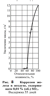 значительно возрастает. Пленка влаги имеет небольшую толщину, кислород