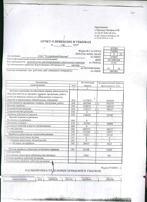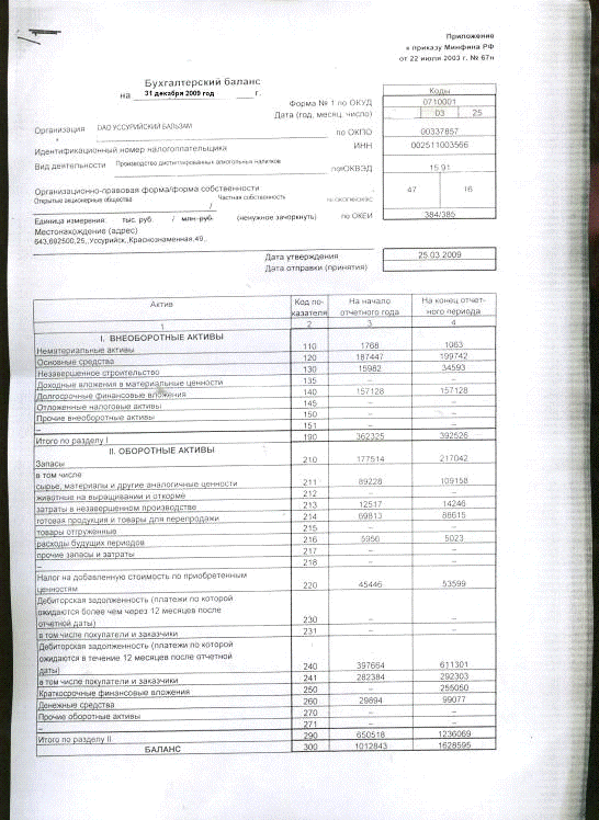 бальзам» в г. Уссурийске с позиций финансового менеджмента.
