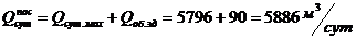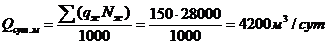 определяем как сумму расхода воды на предприятии и 50% расхода в поселке: