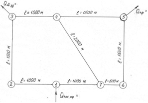 Рис. 3.1 - Расчетная схема водопроводной сети