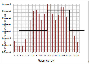 график неравномерности водопотребления объединённого водопровода по часам суток