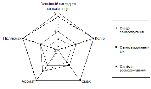 властивостей соку проведено до його заморожування, в свіжозамороженому