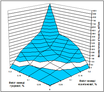 змогу стверджувати, що додавання по 0.1 % камеді гуарової та ксантанової до
