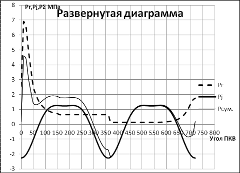 построение векторных и развернутых диаграмм давлений на шатунные и коренные