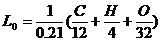требуемое для сгорания 1 кг топлива, L'0=14,28
