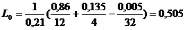требуемое для сгорания 1 кг топлива, по составу топлива в долях массы, L0=0,505
