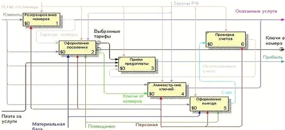 Были исследованы такие бизнес-процессы как: предоставление гостиничного