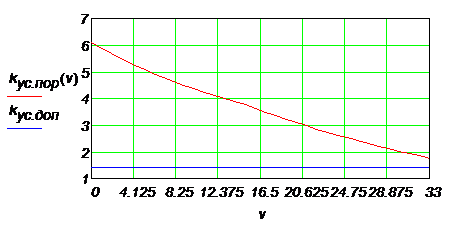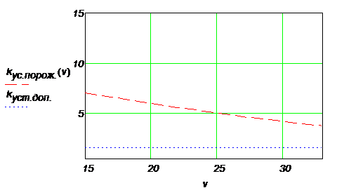 колесной пары против схода с рельса. Получено, что при скорости движения V=33