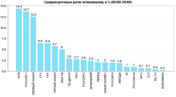 приходится около 10% от среднесуточной аудитории всего российского телевидения