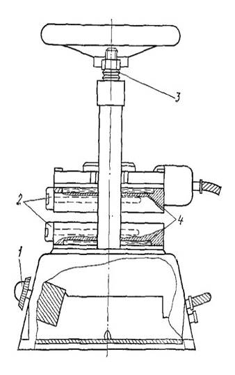 нагреватель. Установленная между плитами и поджатая опока с сырой резиной