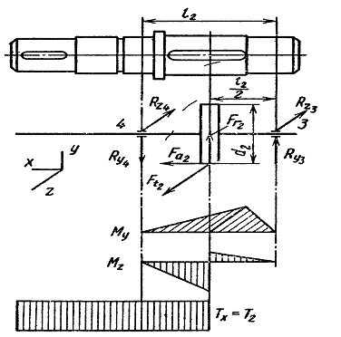 посадочной части вала. Величина этой нагрузки для одноступенчатых зубчатых