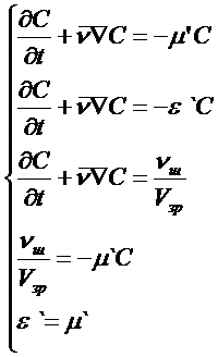 из компонентов жидкости(механических примесей) описывается концентрацией С,