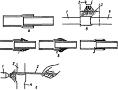 при изготовлении изгибом труб, б - при уменьшении диаметра восходящего