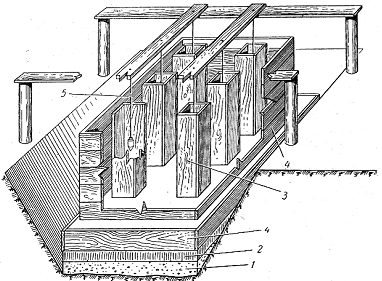 грязи, насекают зубилом и промывают горячей водой. Пo периметру фундамента