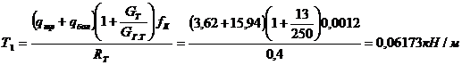 коэффициент трения каната о грунт, fк.н = 1,0.