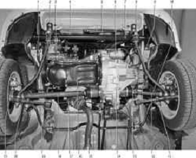 Рис. 1.3. Расположение основных узлов агрегатов автомобиля (вид снизу