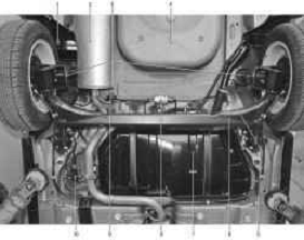 1 - сепаратор; 2 - основной глушитель; 3 - амортизаторные стойки задней