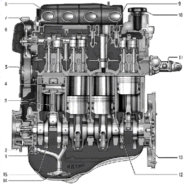 Рис. 2.1. Продольный разрез двигателя ВАЗ-21126: