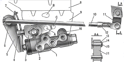тяга привода управления коробкой передач; 15 - рычаг переключения передач; 16 -