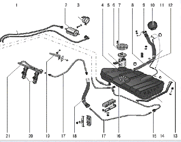 задней подвески; 7 - топливный бак; 8 - фильтр тонкой очистки топлива; 9 -