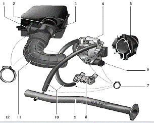 дроссельный узел; 5 - бачок главного тормозного цилиндра; 6 - расширительный