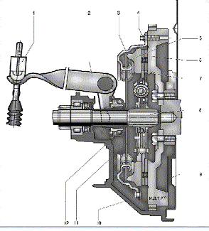 3 установлены трехплечий рычаг выбора передач, две блокировочные скобы 7 и 12.