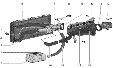 коробка передач; 15 - приемная труба дополнительного глушителя; 16 - масляный