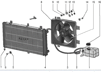 соединяющего радиатор с расширительным бачком. Расширительный бачок 1 служит