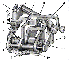 блокировочных скоб; 3 - ось рычага выбора передач; 4, 11 -пружины; 5 -