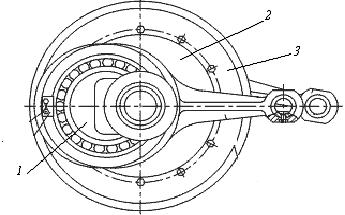шкив; 4 - распорные плиты; 5 - шатун; 6 - сменные плиты; 7 - эксцентриковый