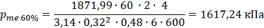 Побудова залежності середнього ефективного тиску від швидкості обертання