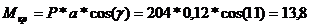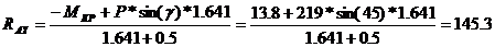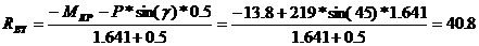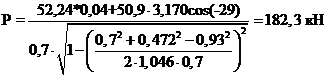 на штоке Р=219 кН; расстояние от точки приложения силы до оси стрелы l=0,12 м; угол между