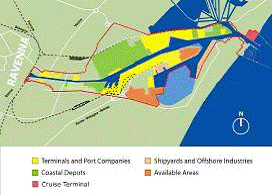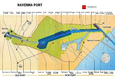 для загрузки мешков; портальные краны, мобильные краны расположены на причалах Nuovo Cap, Eurodocks, Nuova Nadep, Lloyd Ravenna. Склады по обработке