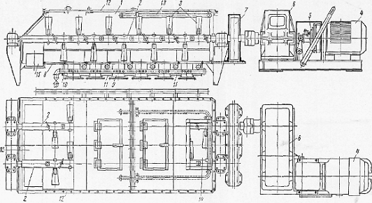 передача; 3 - редуктор; 4 - зубчатая передача; 5 - разгрузочный затвор; 6 -